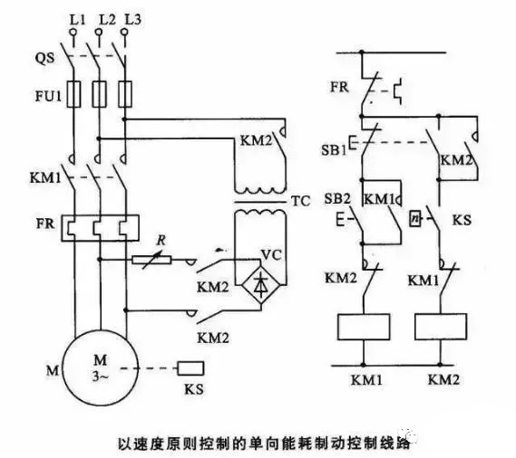 8,以速度原则控制的单向能耗制动控制电路。