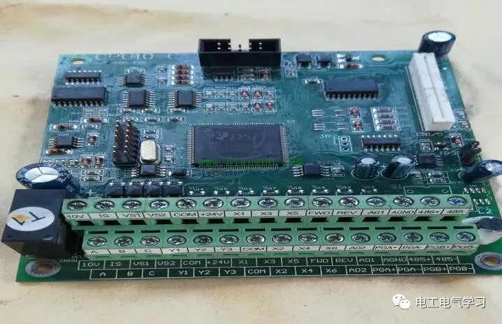 接下来再看一下,变频器辅助输出的两路直流电源经常出现的典型故障。当下绝大部分变频器在主控板辅助端子排上通常都会提供两种输出电压等级和模式的电源:+10V-GND;+24V-COM。其中+10V-GND为模拟量信号电源;+24V-COM为数字量信号电源(多数情况下GND同COM在变频器内部是相互隔离的)。虽说这两种电源之间用途有所区别,但两者均有一个共同点——最大输出电流都十分有限,也就30/50mA!可一些用户对此不管不顾,用来拖动触摸屏、文本编辑器、PLC扩展单元,甚至是MY系列直流继电器等!如此一来,轻则造成变频器辅助直流电源过载,影响变频器主控板的正常运行;重则直接导致有关线路损坏!为此在实际情况中,合理使用变频器提供的两路辅助电源也是广大电工同行应该注意的。