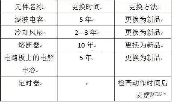 5、定期检查更换变频器的一些元器件,具体如下表所示