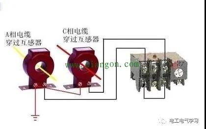 这种接线方法实际和电流表的接线方法如出一辙,同样是P1端分别接入热继的进线端,出线端短接后同互感器P2端接地。